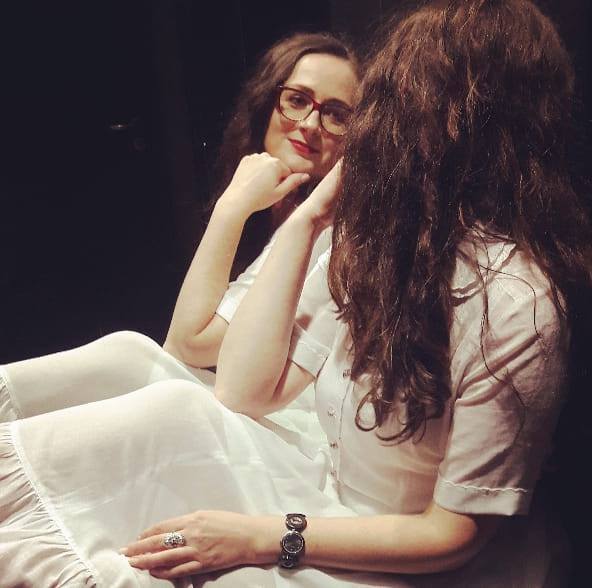 Slaba svjetlost na sredini sobe od njene sjenke pravi džinovsku figuru. Umače prst u crvenu tintu i po ogledalu ispisuje svoje pjesme. Njegove oči iz kuta sve posmatraju, dok ruke ocrtavaju konture njenog tijela.